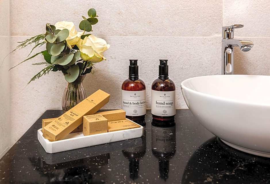 A mini-bar is available, as well as coffee and tea making facilities, a bottle of water, a professional hairdryer and extra amenities. The room furthermore features a large flat-screen TV, free WiFi and a safe.