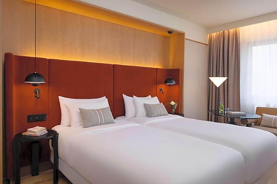 This 55 square yards modern room features either a queen bed or two single beds. The room benefits from a spacious layout, carpeted floors and a bathroom with a separate bathtub, shower and bathrobe per person. Some rooms feature a dressing room.